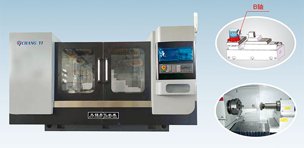 ● 机床采用工件进给,B轴分度(力矩转台),工作台(砂轮架)左右运动的结构方式,工件箱进给及砂轮架运动导轨均为滚动直线导轨,均由伺服电机驱动滚珠丝杠运动,工件主轴及砂轮主轴旋转速度均由变频器控制,实现无级调速。工件夹 紧为液压动力卡盘,同时可以根据用户工件的特殊性配置其它相匹配的夹具。